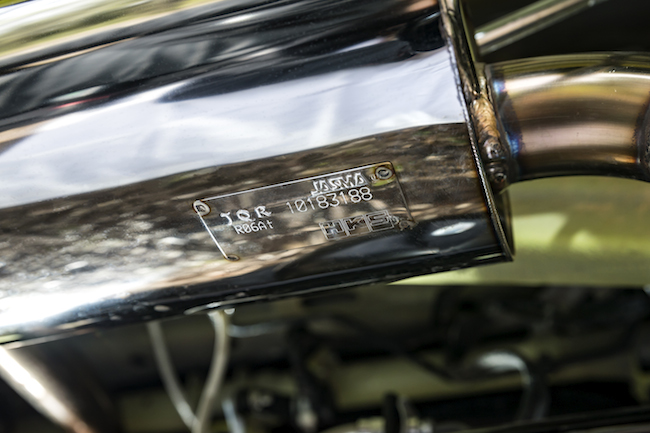 「JQR」のプレートは、平成22年度騒音規制を適合した車検対応マフラーの証。