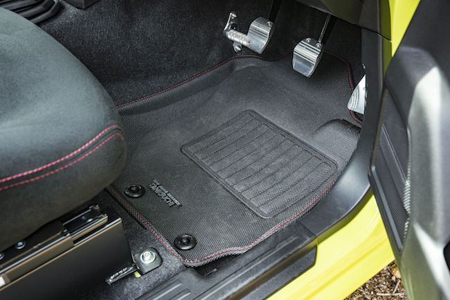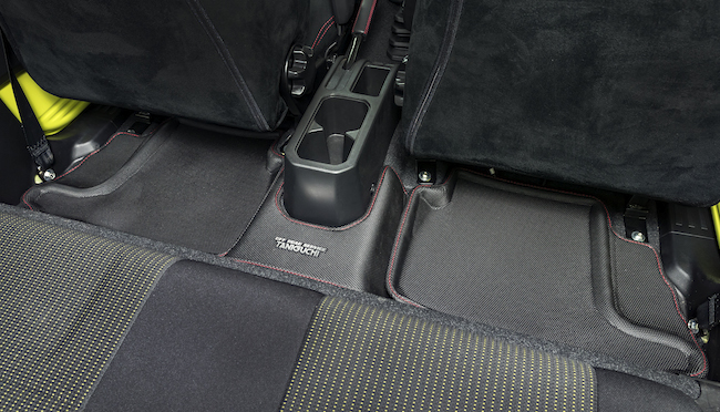JB64・74専用設計で、マットのズレを防ぎ安全。土や汚れが極力外に出ないよう立体構造を採用。水に強い特殊ラバー素材のため、お手入れも簡単だ。